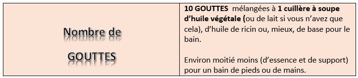 Variante 1 : les bains de pieds. Il suffit de les tremper durant 15 à 20 minutes dans de l’eau chaude additionnée de quelques gouttes d’huiles essentielles. Idéal contre les coups de froid « attrapés » dans la journée, ils peuvent empêcher un rhume voire une grippe de s’installer. A condition de recouvrir les deux pieds d’eau chaude (jusqu’aux chevilles) dès avant les premiers symptômes : vous avez eu froid ? Vite, un bain de pieds ! Rajoutez de l’eau chaude dès que votre bain refroidit et laissez-vous aller au bien-être.